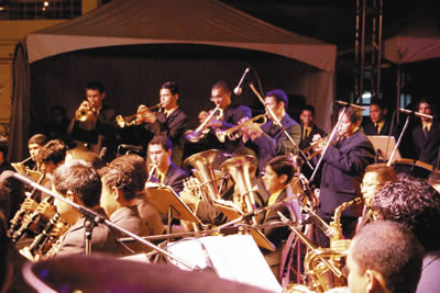 A banda que veio de Corumbá, MS para o Festival de Música se apresenta agora na Concha Acústica. O conjunto, formado por 32 instrumentistas, apresenta sob a regência do maestro José Carlos de Oliveira, um programa variado com mambos, rumbas, boleros, com direito a canções de Enio Morriconi, Mozart e compositores brasileiros.